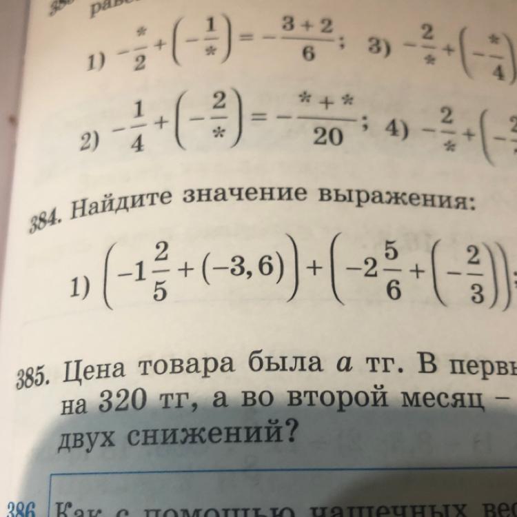 Задача по №384 найдите значение выражения для школьников 5 - 9 класс? Узнайте решение и получите советы по предмету Математика. Прочитайте множественные ответы, чтобы разобраться в теме. Ответы уже доступны. Если у вас есть трудности, не стесняйтесь попросить помощи у экспертов. А также вы можете стать экспертом и помогать другим ученикам!
