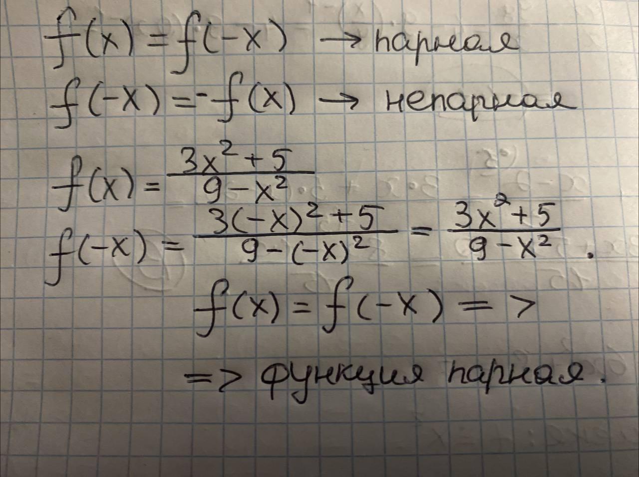 Не можете решить задачу по помогите функция парная или нет,с подробным решением!? На странице есть несколько вариантов решения задачи для школьников 10 - 11 класс. Ответы уже доступны. Задавайте вопросы, получайте помощь и становитесь экспертом, помогая другим ученикам разобраться в сложных темах.