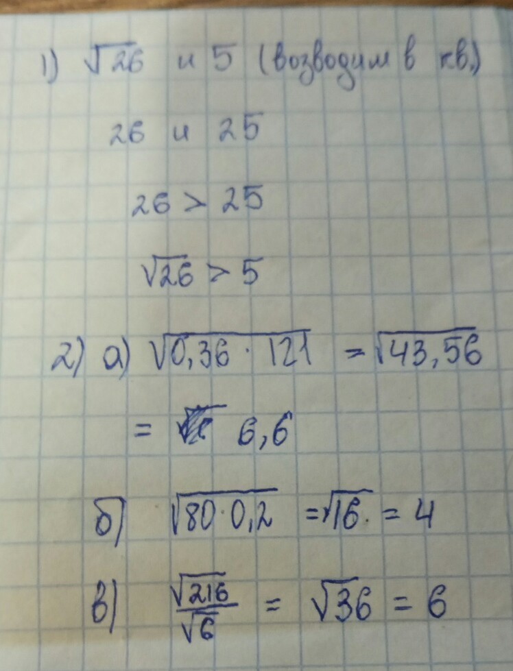 a)√26 и 5=√25⇒√26>5