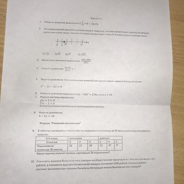 Задача по все задания,кроме 2,8,9 для школьников 10 - 11 класс? Читайте обсуждения и ответы на тему Алгебра. Ответы на этот вопрос уже есть. Присоединяйтесь к нам, задавайте вопросы и делитесь своими знаниями с другими участниками.
