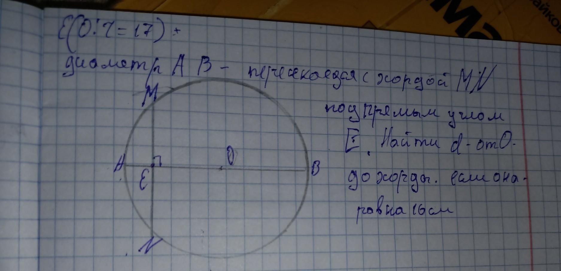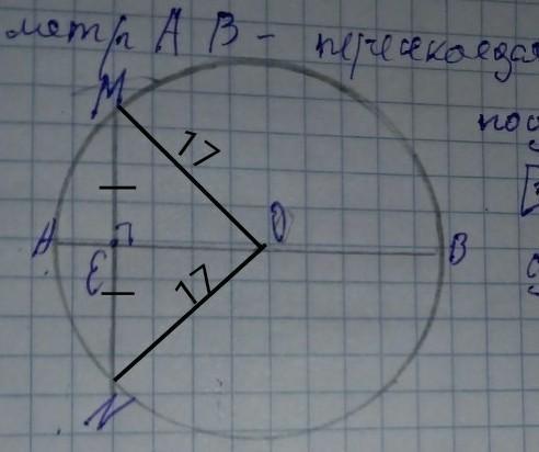 ЕО=√(МО²-МЕ²)=√(17²-8²)=