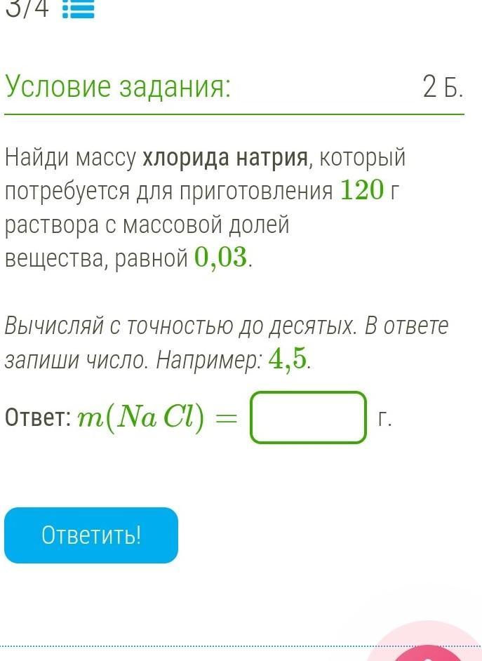 m(в-ва)=m(р-ра)×ω(в-ва)/100%=120×3/100=3,6 г