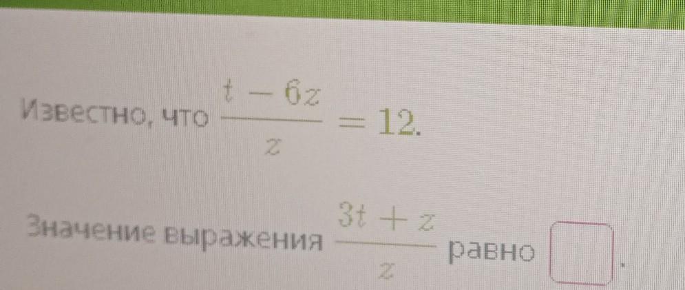Нужны ответы на задачу по известно, что t-6z/z=12. значение. выражения 3t+z/z равно. ? Читайте множественные решения и рекомендации от участников. Ответы на этот вопрос [Наличие ответов: если есть ответы, то 'уже доступны', если нет — 'пока нет']. Присоединяйтесь к нашему сообществу, задавайте вопросы и делитесь своим опытом с другими.