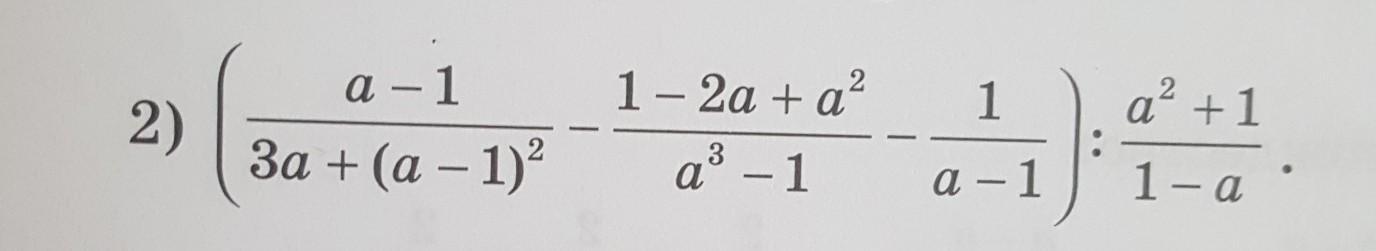 [((а — 1)(а — 1)) — (1 — 2а + а²) — 1*(а² + а + 1)]/[(а — 1)(а² + а + 1)] =