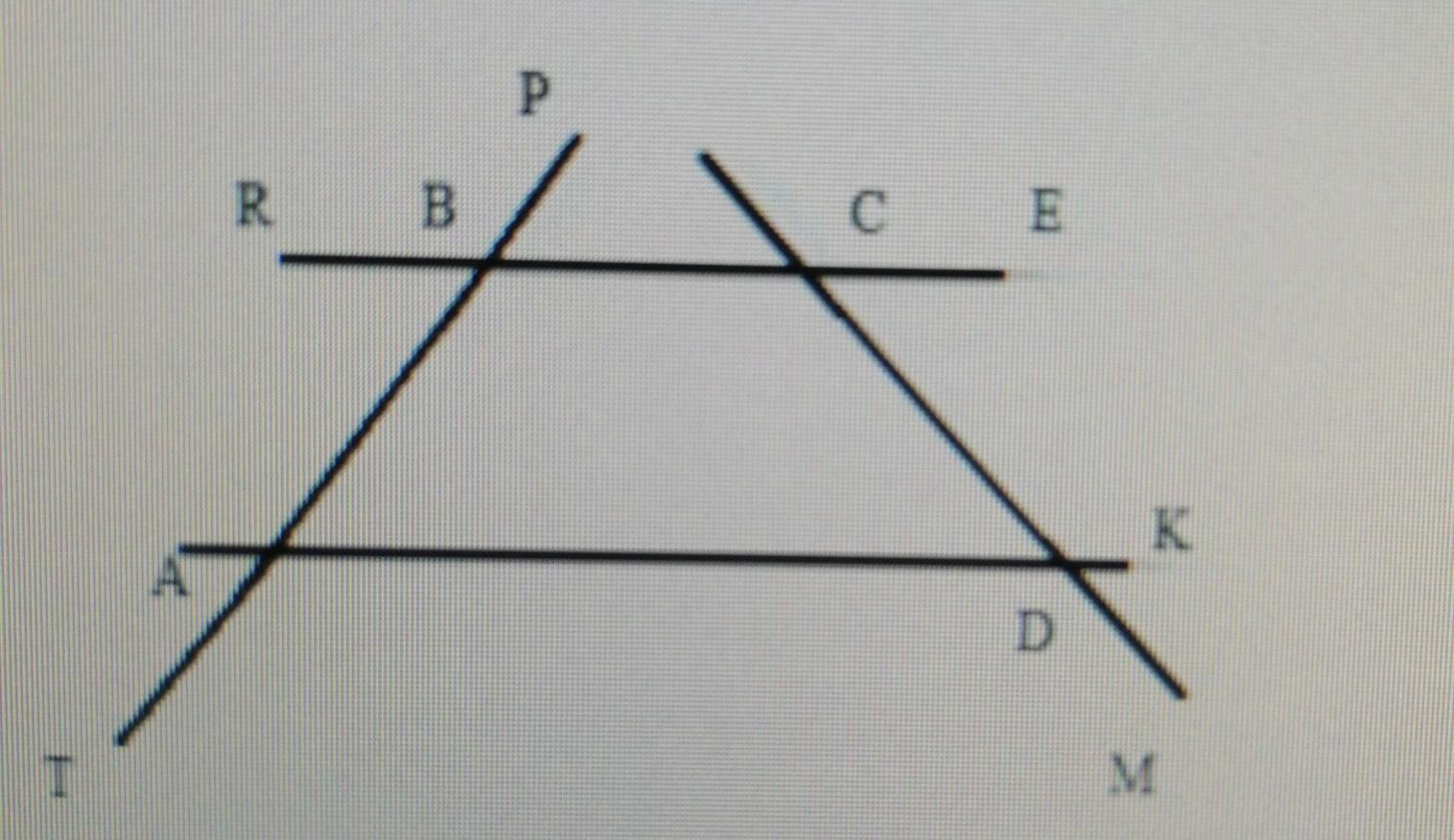 эти углы лежат на параллельных прямых ак и ре и есть секущая тп. такие углы как накрестлежащие, внутренние одностороннии и соответственно надо запоминать