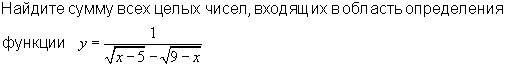 Задача по НАЙДИТЕ СУММУ ВСЕХ ЦЕЛЫХ ЧИСЕЛ, ВХОДЯЩИХ В ОБЛАСТЬ ОПРЕДЕЛЕНИЯ ФУНКЦИИ для школьников 5 - 9 класс? Здесь вы найдете ответы на вопрос, обсуждения и полезные рекомендации по предмету Математика. Ответы на этот вопрос уже добавлены. Присоединяйтесь к нашему сообществу, задавайте вопросы и становитесь экспертом!