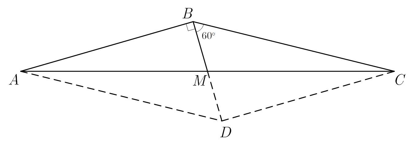 Удвоим медиану — продлим ее за точку , . Тогда образовавшийся четырехугольник параллелограмм с тупыми углами и острыми углами