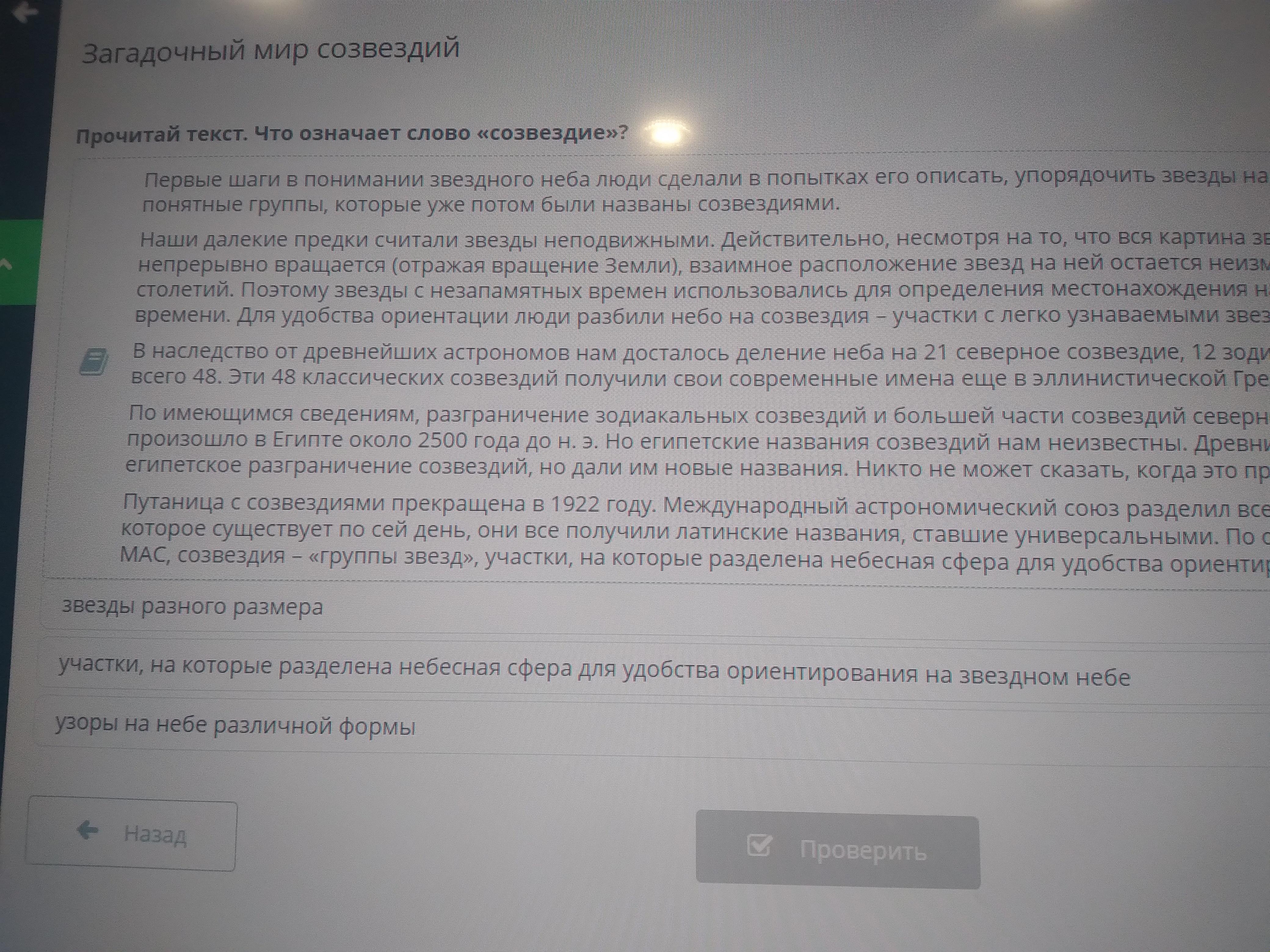 Не можете решить задачу по ПРОЧИТАЙ ТЕКСТ .ЧТО ОЗНОЧАЕТ СЛОВО СОЗВЕЗДИЕ? На странице есть несколько вариантов решения задачи для школьников студенческий. Ответы уже доступны. Задавайте вопросы, получайте помощь и становитесь экспертом, помогая другим ученикам разобраться в сложных темах.