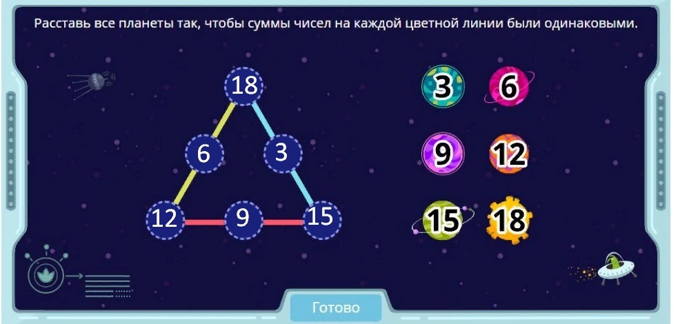 Расставь все планеты так,чтобы сумма чисел на каждой цветной линии были одинаковыми олимпиада заврики 4 класс навигатор .Основного тура