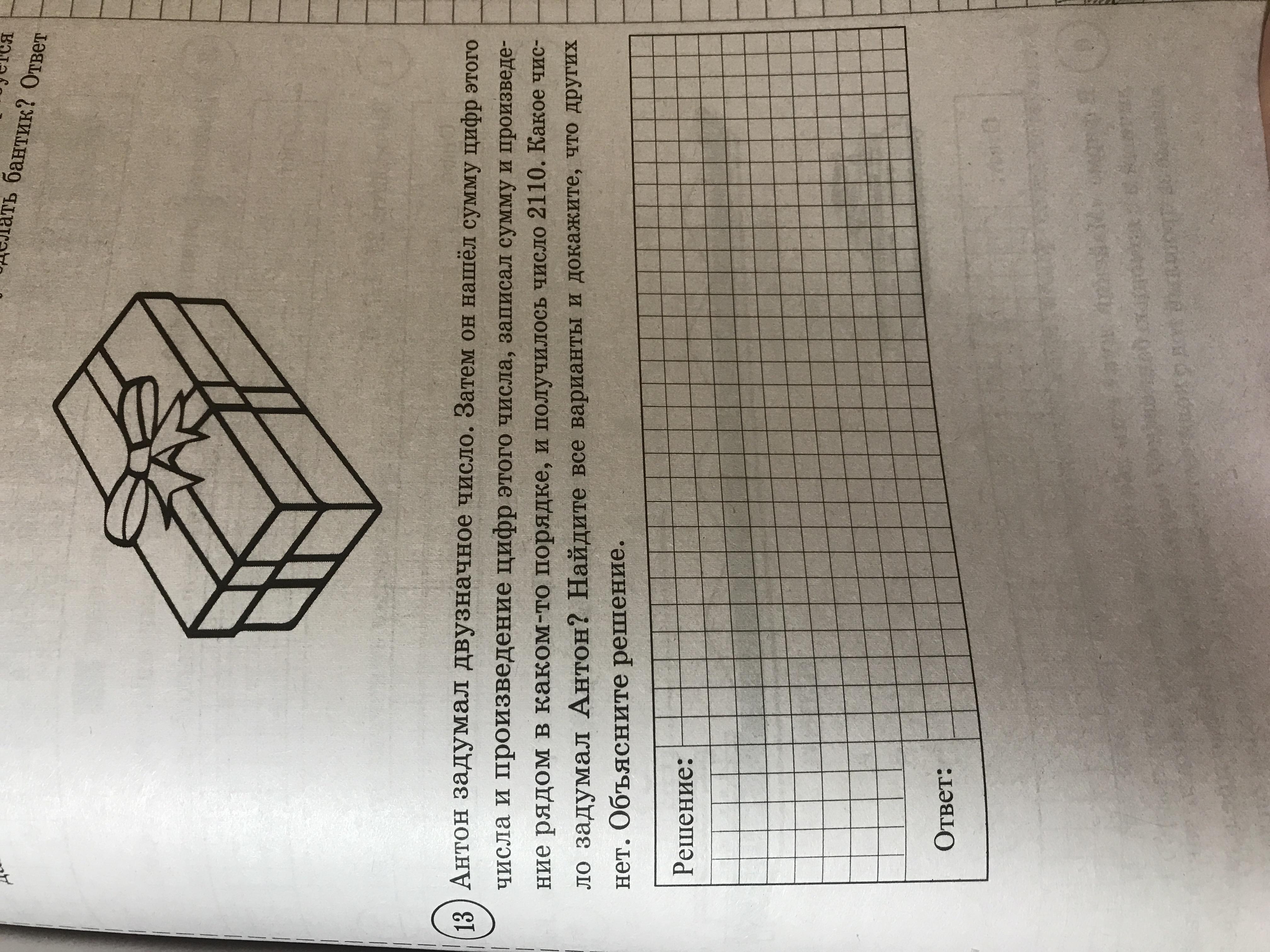 Число 21 больше 18, поэтому 21 — это произведение цифр, а 10 — сумма. Произведение 21 дают только две цифры: 3 и 7, при этом их сумма как раз 10. Антон мог задумать число 37 или число 73.
