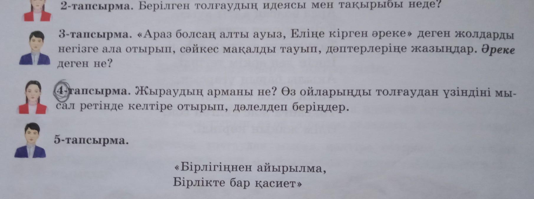 1-тапсырма.Берілген өлең үзіндісінің мазмұнын сақтап, қара сөзге айналдырып жазыңыз
