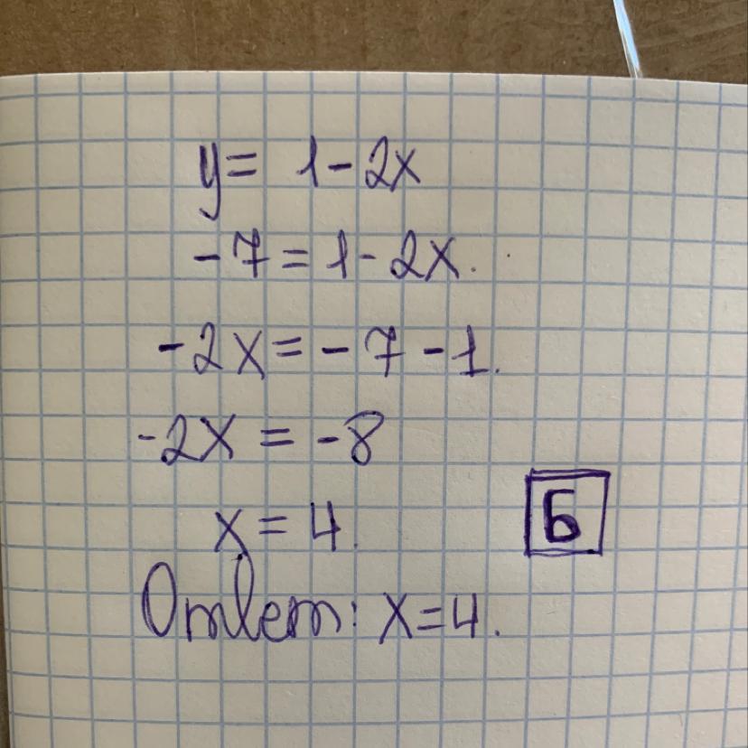 Помогите пожалуйста! 3. функиия задана формулой у=1-2х. Найдите значение аргумента, при котором значение функи равно-7. A) -4: Б) 4: B) 15; Г)-13 Д) другой ответ.