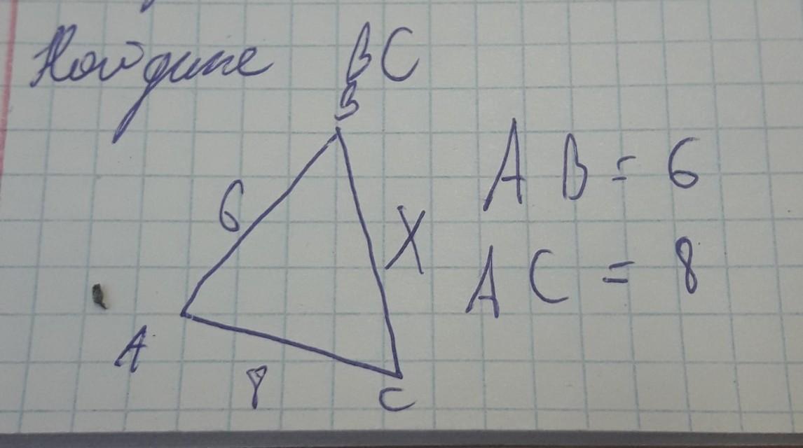 Нужна помощь с задачей по срочно 30 баллов плиз ответьте ab =6 ac=8? Получите подробные решения и обсуждения от других участников для школьников 5 - 9 класс. Ответы на этот вопрос уже добавлены. Мы приглашаем вас задать свой вопрос и стать экспертом для других.