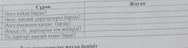 Әсел емханаға қашан барды?–Әсел емханаға сәрсенбі күні барды