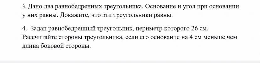 3.По свойству равнобедренного треугольника углы при основании равны, следовательно при равных углах пои основании и равных основаниях треугольники равны по 2 признаку равенства треугольников.