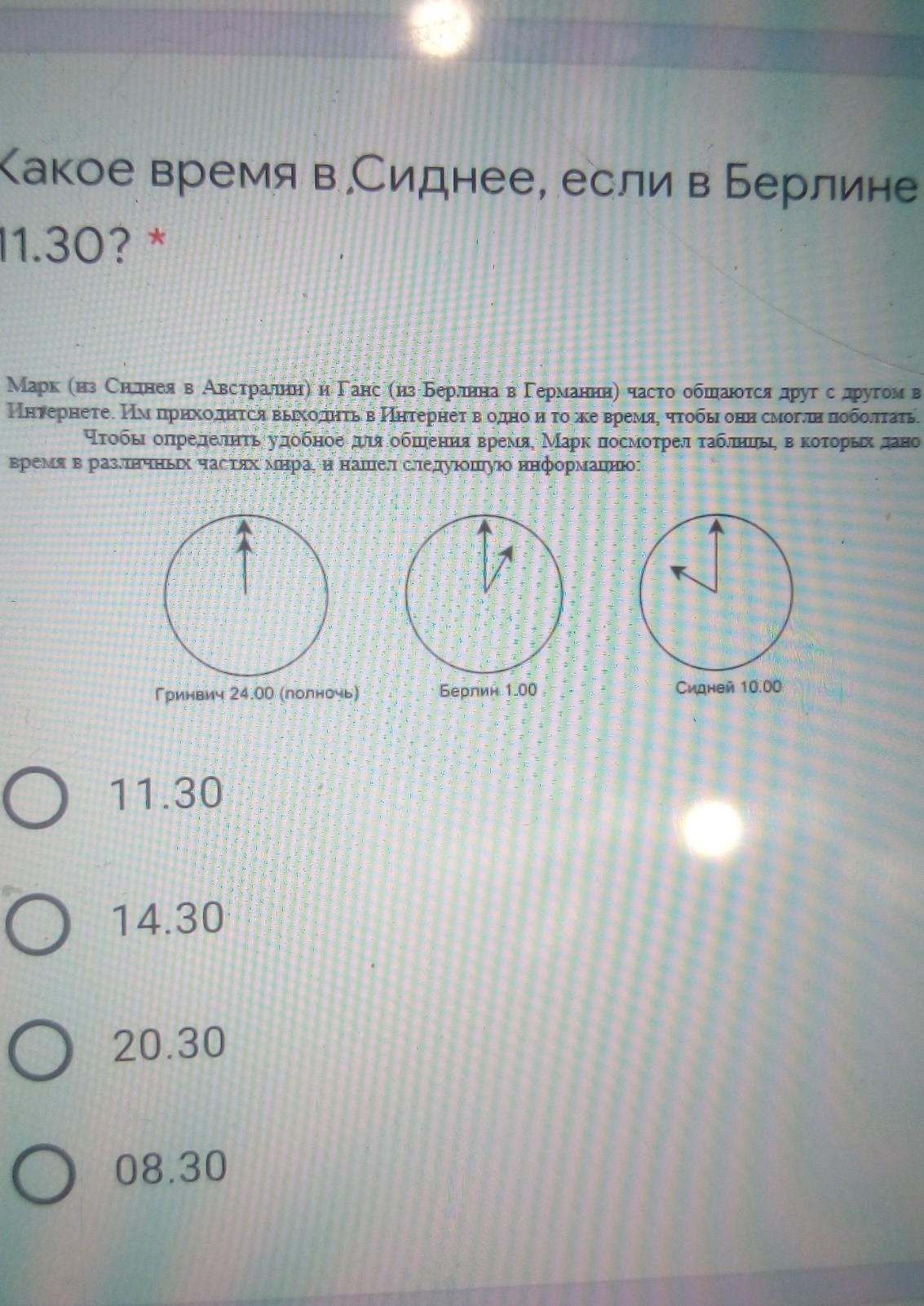 Получите помощь с решением задачи по Какое время в Сиднее, если в Берлине 11.30? * для 1 - 4 класс. В разделе обсуждений вы найдете различные подходы к решению задачи по Математика. Ответы на этот вопрос уже добавлены. Наш сайт позволяет вам задавать вопросы и получать ответы от экспертов и других школьников.