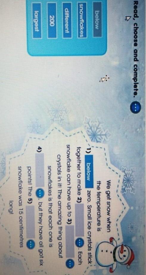 1) Below, 2) Snowflakes, 3) 200, 4) Different, 5) Largest