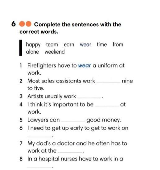 2) from 3) weekend 4)team 6)time 5) happy 7)alone