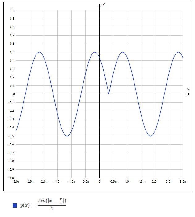ПОСТРОИТЬ ГРАФИК ФУНКЦИИ y = 1/2 * sin |x — π/3|
