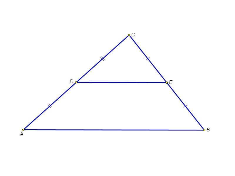 Пусть D ∈ AC, а Е ∈ BC, тогда DE║AB (свойство средней линии)