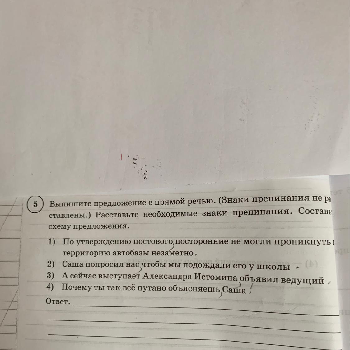 1. По утверждению постного, постного построенние не могли прлникнуть в территорию авто базы незаметно Саша попросил нас чтобы мы подождали его у школы. А сейчас выступает Александр Истомина, объявил ведущий. Почему ты так всё путано объясняешь, Саша!