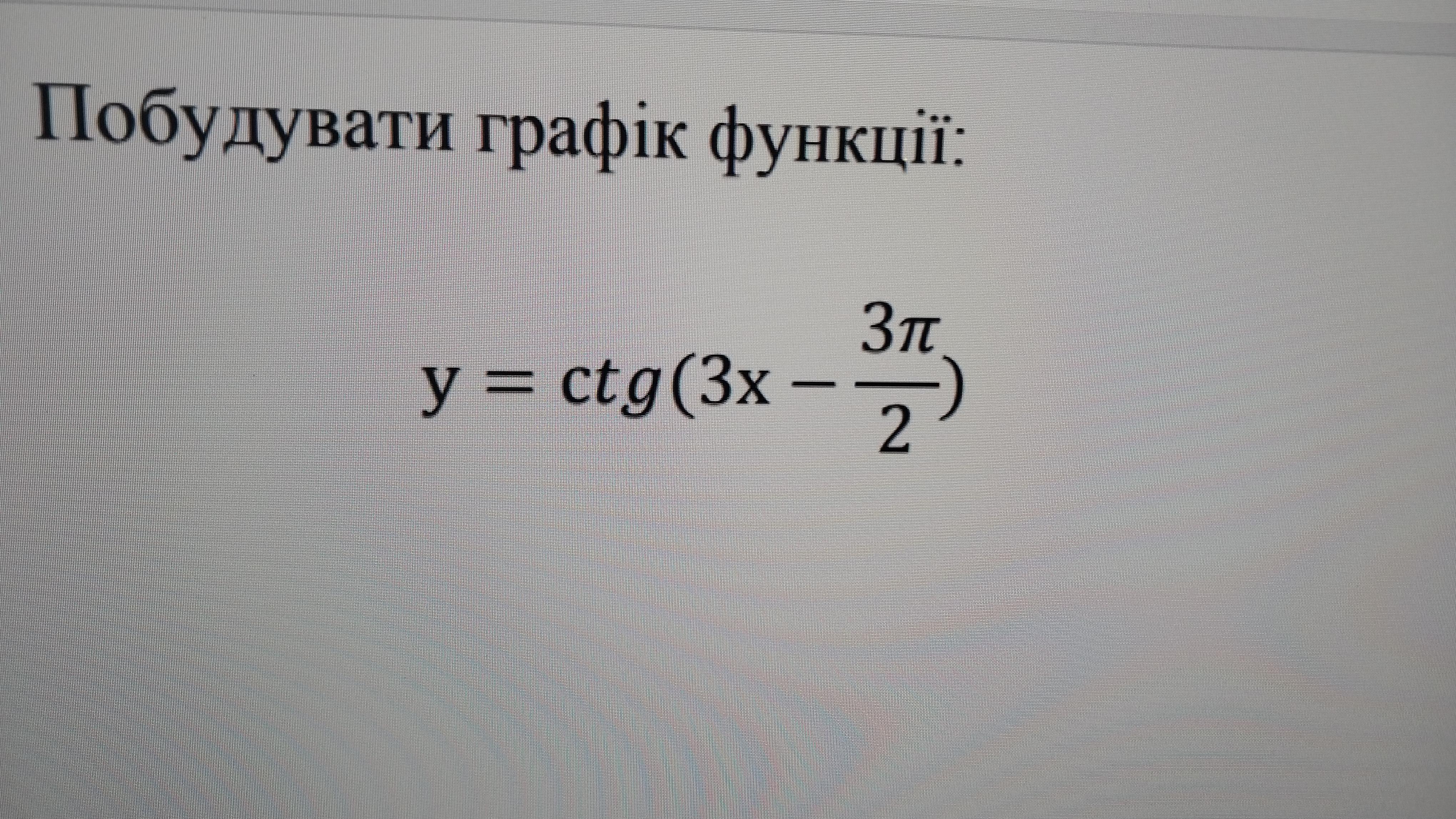 Ищете помощь с задачей по 5. Побудувати графік функції: y = cot(3x - (3n)/2)? Узнайте, как решить задачу для школьников студенческий и читайте обсуждения от других участников. Ответы уже опубликованы. Не забывайте, что вы можете задать свой вопрос или стать экспертом, помогая другим пользователям.