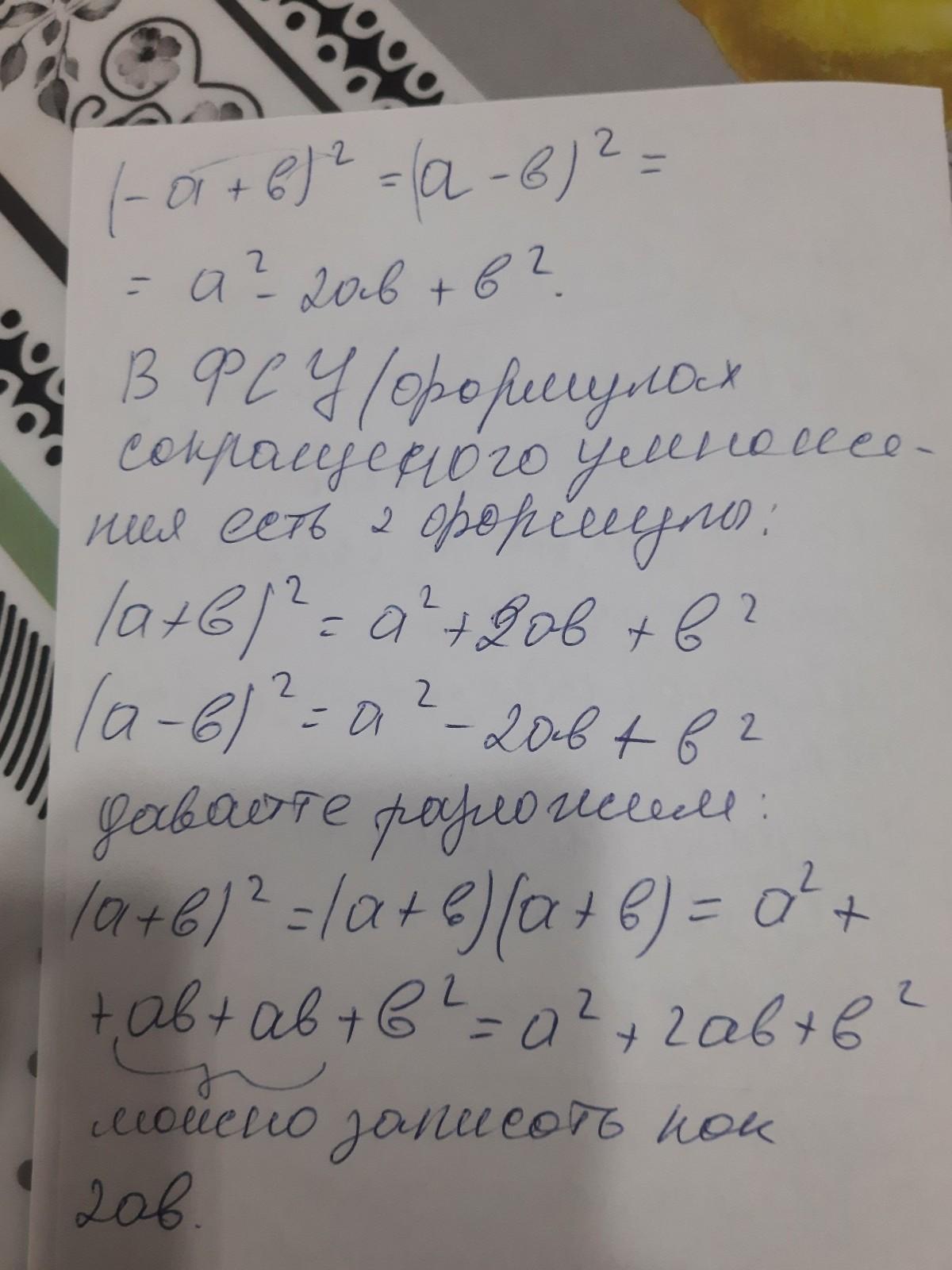 (а-в)² = тоже раскладываем на (а-в)(а-в) и перемножаем а²-ав-ав +в²