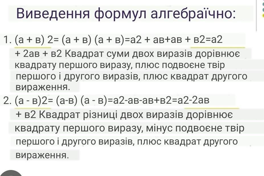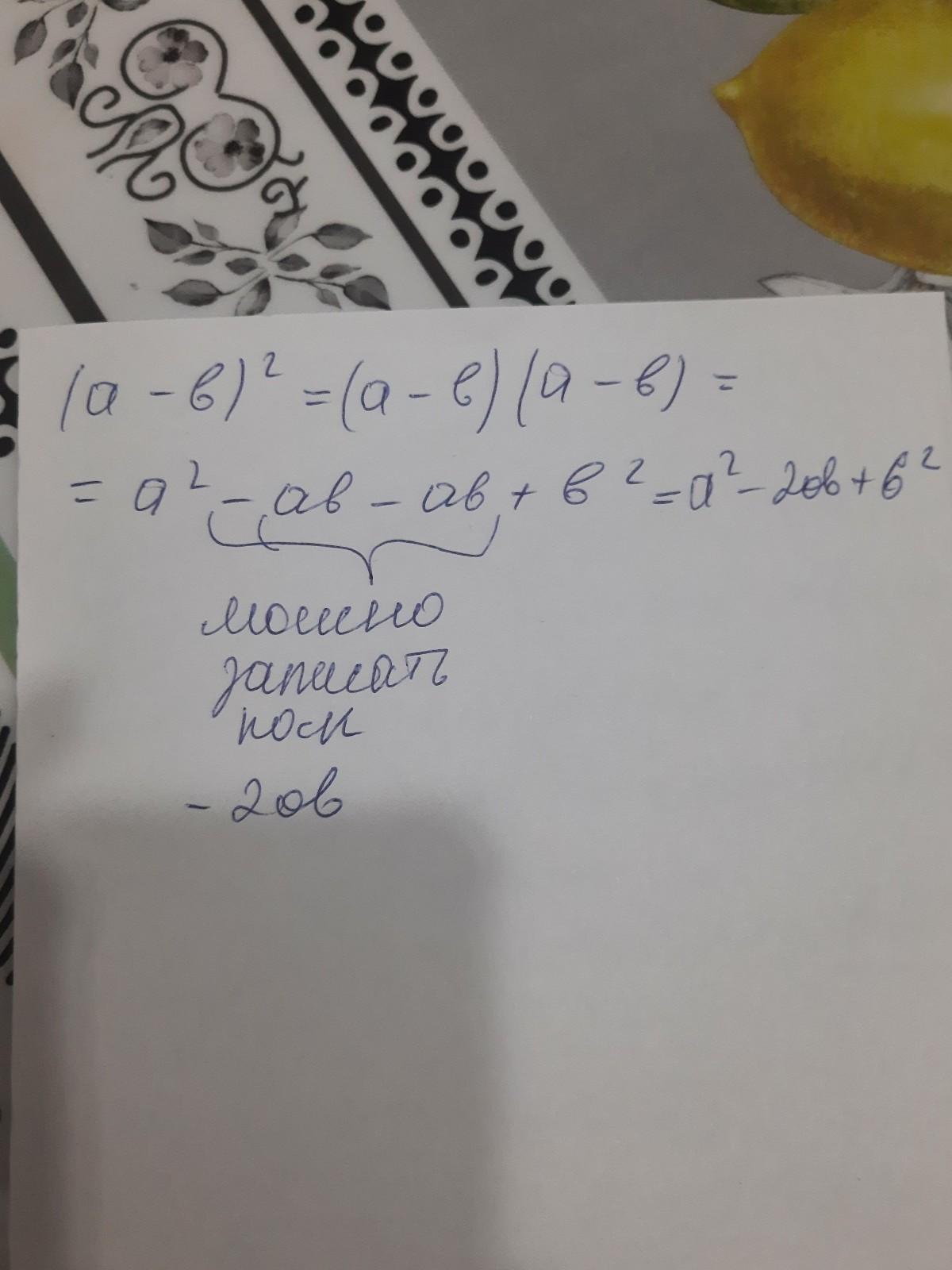 (а-в)2 = теж розкладаємо на (А-в) (А-в) і перемножуємо А2-ав-ав + в2