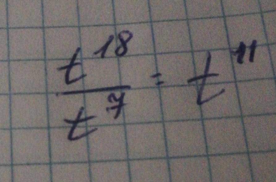 Представь частное t18:t7 в виде степени.