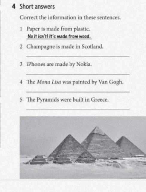 5. The Pyramids were built in Greece. **No, the Pyramids were built in Egypt.**