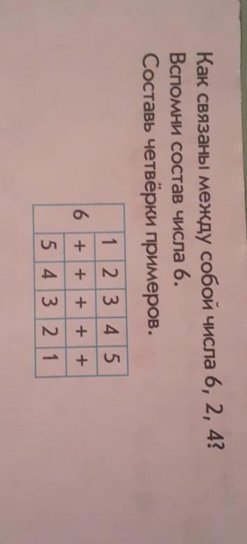 Ищете решение задачи по Как связаны между собой числа 6, 2, 4? Вспомни состав числа 6. Составь четвёрки примеров. 1 2 3 4 5 6 +++++ 54321? Узнайте, как решить задачу для школьников 1 - 4 класс, и читайте обсуждения на тему Математика. Ответы уже доступны. Задавайте свои вопросы и становитесь частью нашего сообщества экспертов!