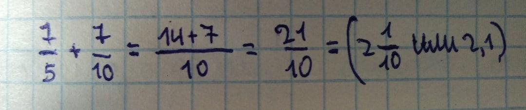 по нок находим , что общий множитель 10, умножаем 7 на 2 т.к. : 10:5=2