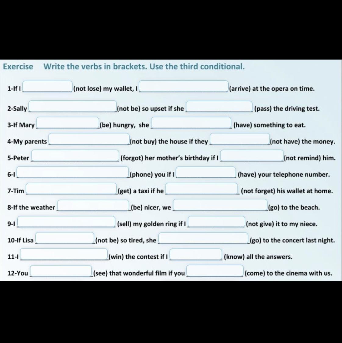 Feel in the correct form of the verb in brackets. Use Conditional III: If Mary had been free yesterday I (invite) her. If the weather (be) miserable, what would you have done? (not know) about the meeting. (join) us. (not rain) yesterday we would have gone on a picnic. — — If you hadn’t called I If she had received an invitation she If it