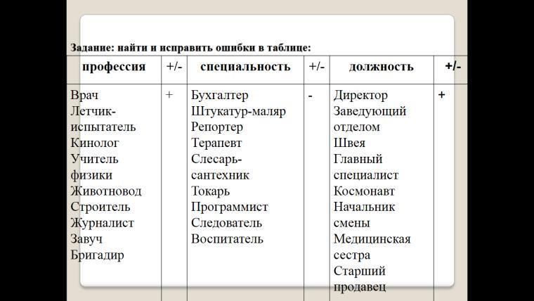 в третьем- старший продавец , космонавт , мед.сестра , швея