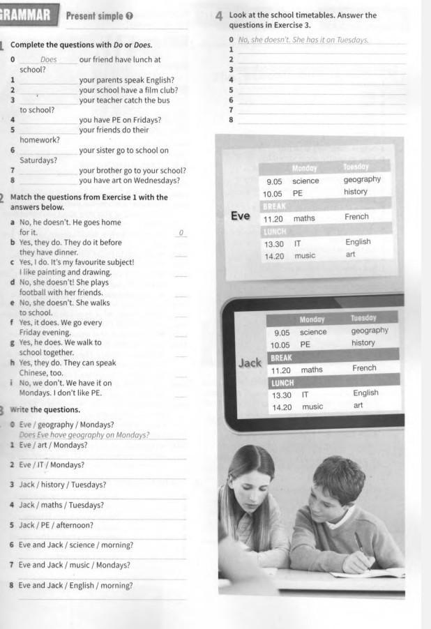 4) Does Jack have maths on Tuesdays?