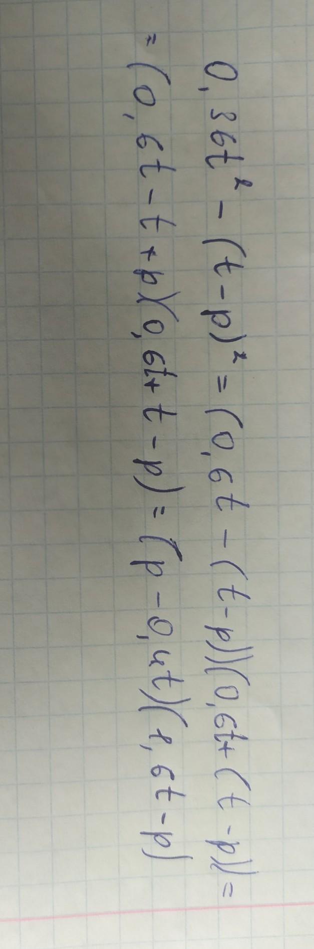 Нужна помощь с задачей по Помогите решить раложи на множители 0,36t2-(t-p)2? Получите подробные решения и обсуждения от других участников для школьников 5 - 9 класс. Ответы на этот вопрос уже добавлены. Мы приглашаем вас задать свой вопрос и стать экспертом для других.