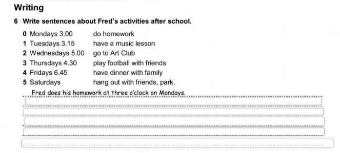 2. Fred goes to Art Club at five o’clock on Wednesdays.