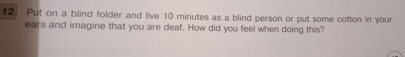 It was a very uncomfortable feeling. I couldn’t do some things which I always do in my everyday life. I needed help from my parents to go to another room. It is really difficult to not be able to see anything.