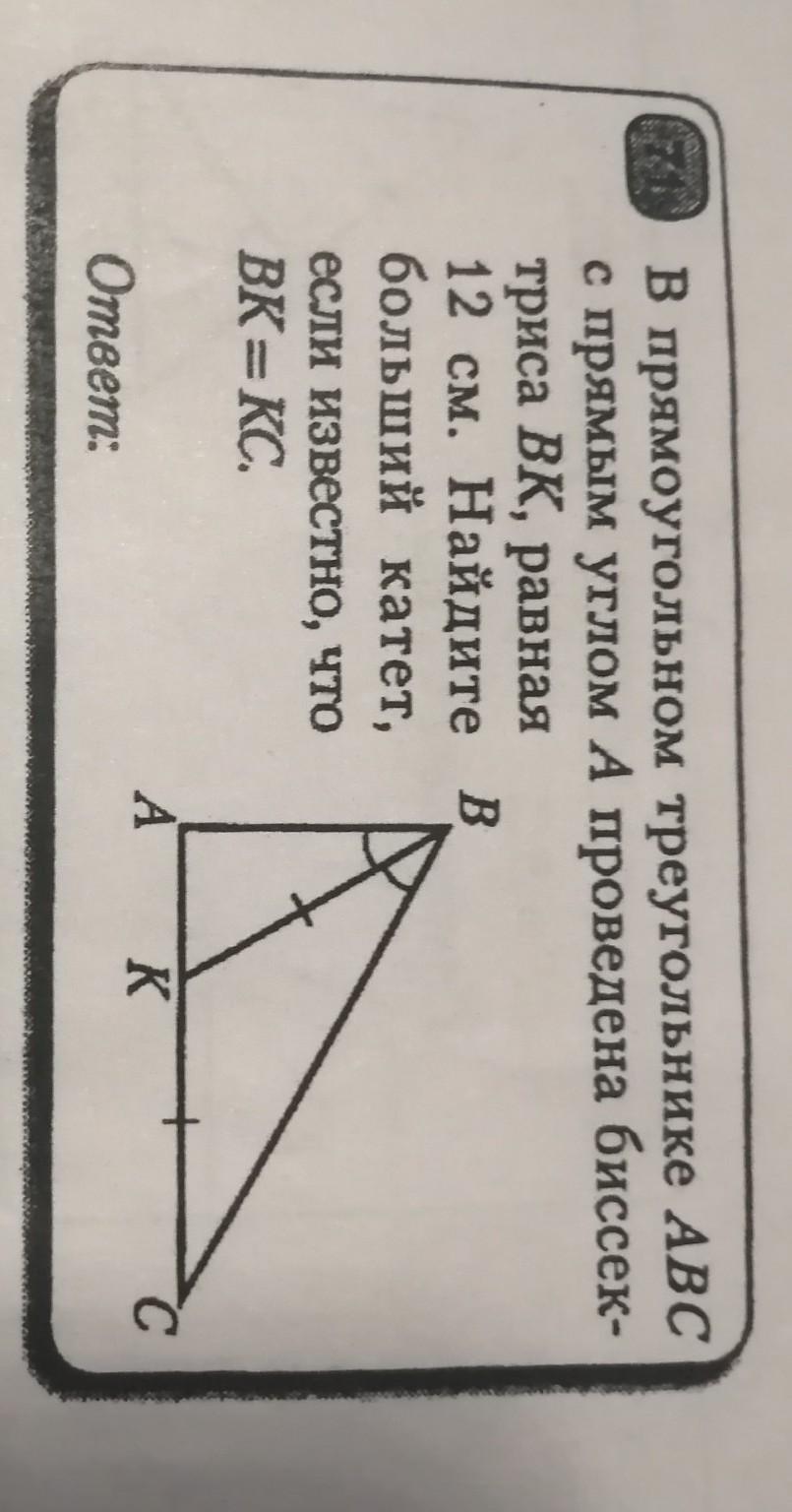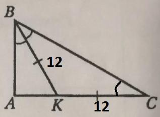 В ΔАВК ∠АВК = 30°, гипотенуза ВК = 12.