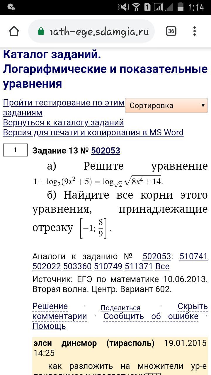 Решение задачи по Знаю, что подобные уравнения решаются с учетом ОДЗ. На "Решу ЕГЭ" его не учитывают, да и ОДЗ получается какое-то странное, например: x^2> -5/9 Объясните, пожалуйста, как с этим быть для школьников 10 - 11 класс. Узнайте, как решить задачу, читайте обсуждения и ответы на тему Алгебра. Ответы на этот вопрос уже добавлены. Наш сайт предоставляет вам возможность задавать вопросы и помогать другим стать лучше.