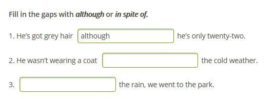 Fill in the gaps with although or in spite of.