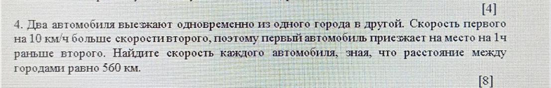 Пусть X — это скорость 2-ого автомобиля, а ( x+10) —