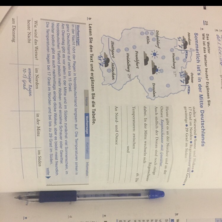 Heute gibt es an der Nordsee und an der Ostsee Regenschauer und Gewitter. Auch südlich der Donau sind noch einige gewittrige Regenschauer dabei. In der Mitte wechseln sich Sonne und Wolken ab. Die Temperaturen : zwischen 17 Grad im Norden und 29 Grad im Süden. An Nord-und Ostsee ist starker Westwind.