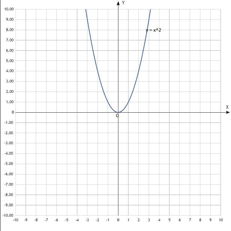 График — классическая парабола, ветви направлены вверх, вершина в начале координат.