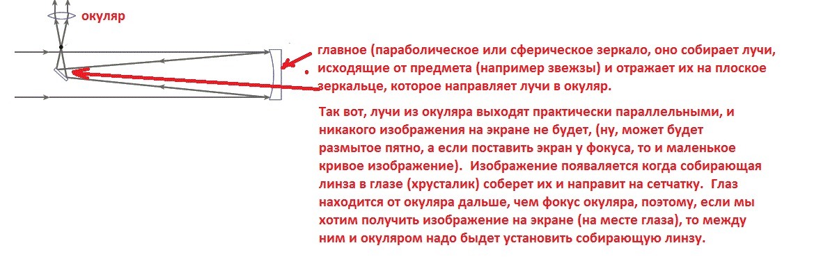 Можно ли получить изображение звезды на экране, если его поместить на место глаза возле окуляра рефлекторного телескопа И. Ньютона? Ответ поясните.