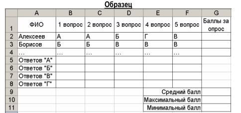 Для выполнения расчетов используйте функции СЧЁТЕСЛИ, СРЗНАЧ, МАКС, МИН.
