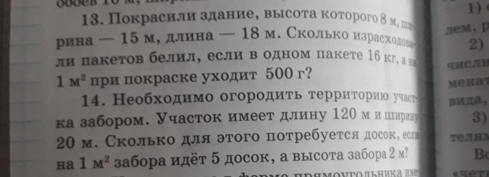 500 г = 0,5 кг528 * 0,5 = 264 кг — краски израсходовали264 : 16 = 16,5 пакетов — израсходовали — ответ.14)2*(120+20)=280 (м) — периметр забора280*2=560 (м) -площадь всего забора