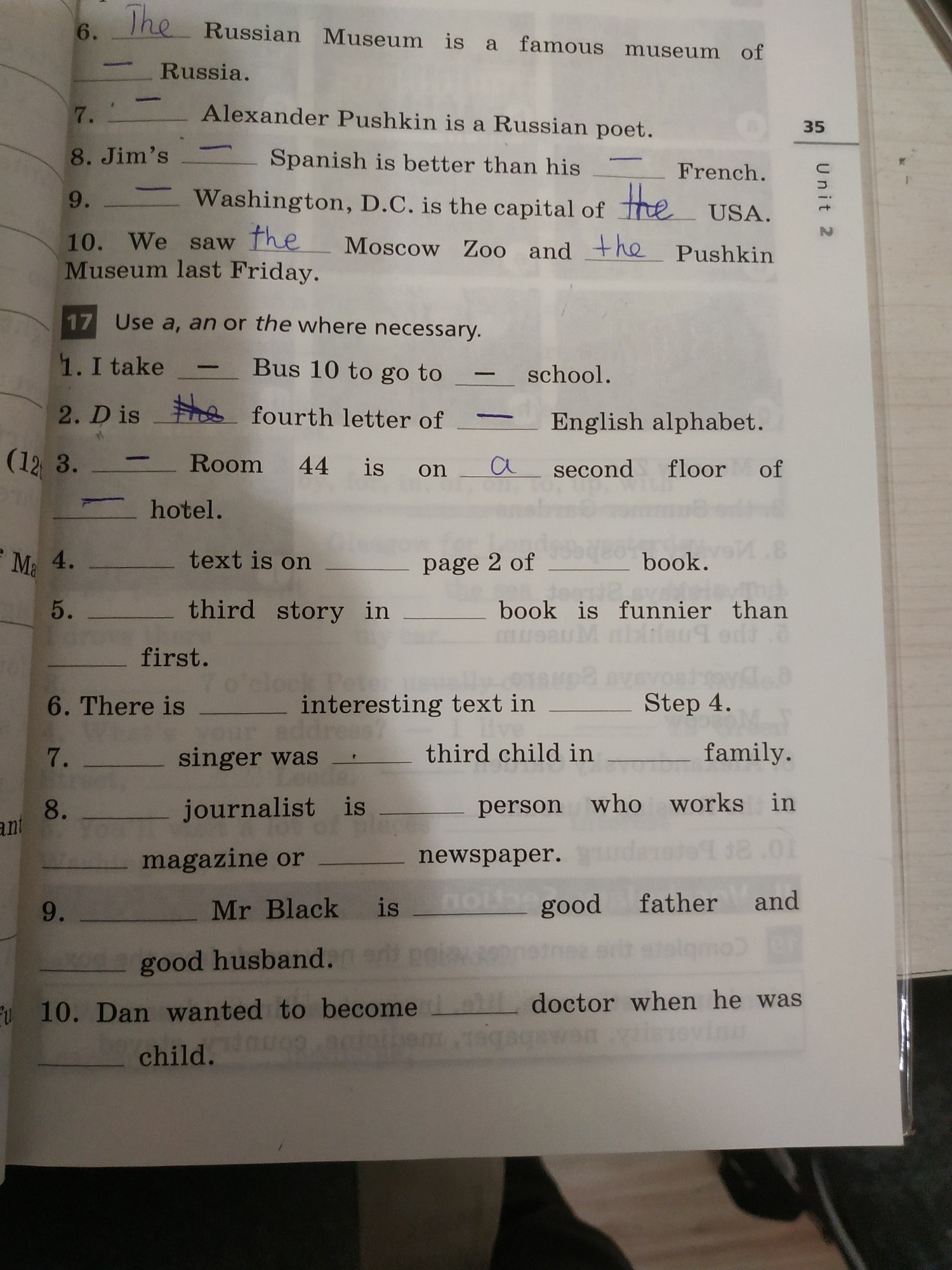 Нужно поставить артиклы в нужном месте ПОМОГИТЕЕ! a / an, the, or -(= no article).