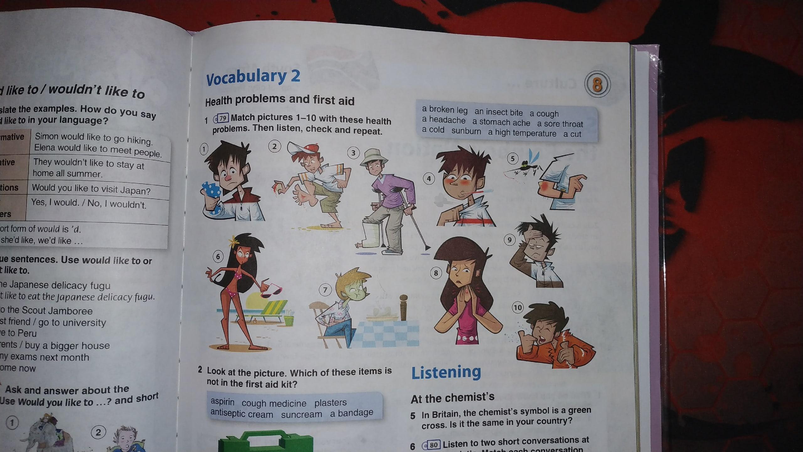6) a) in b) up c) out d) to