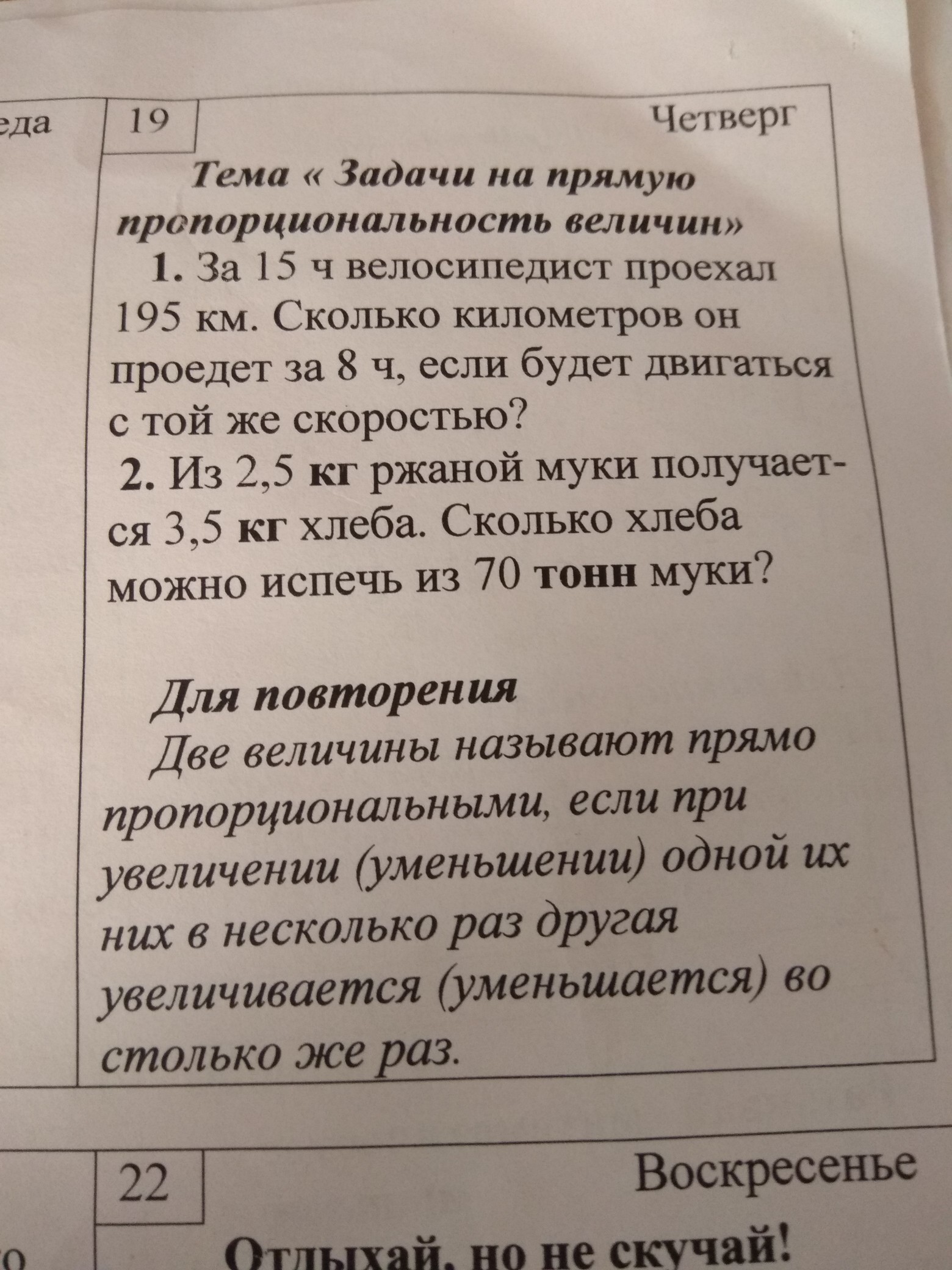 S1 / t1=S2 / t2 где S1-расстояние =195 км, t1- время =15 часов, S2- неизвестное =Х, t2-время равное 8 часам.
